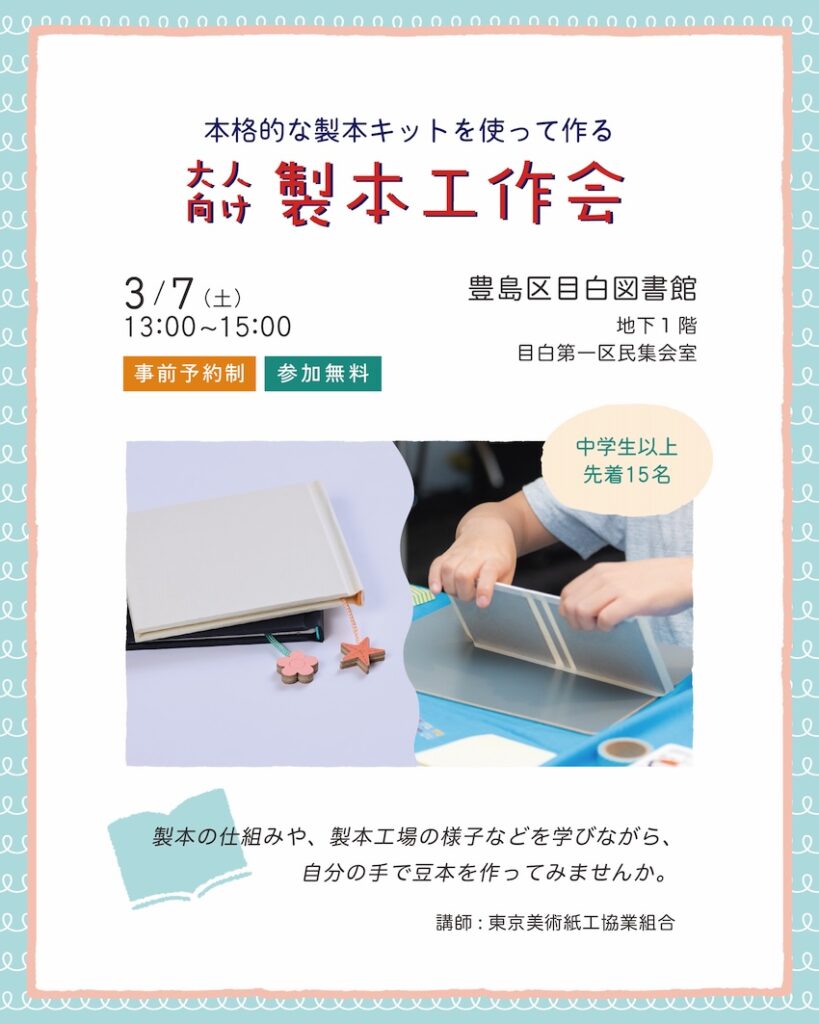 本格的な製本キットを使って作る大人向け工作会です。