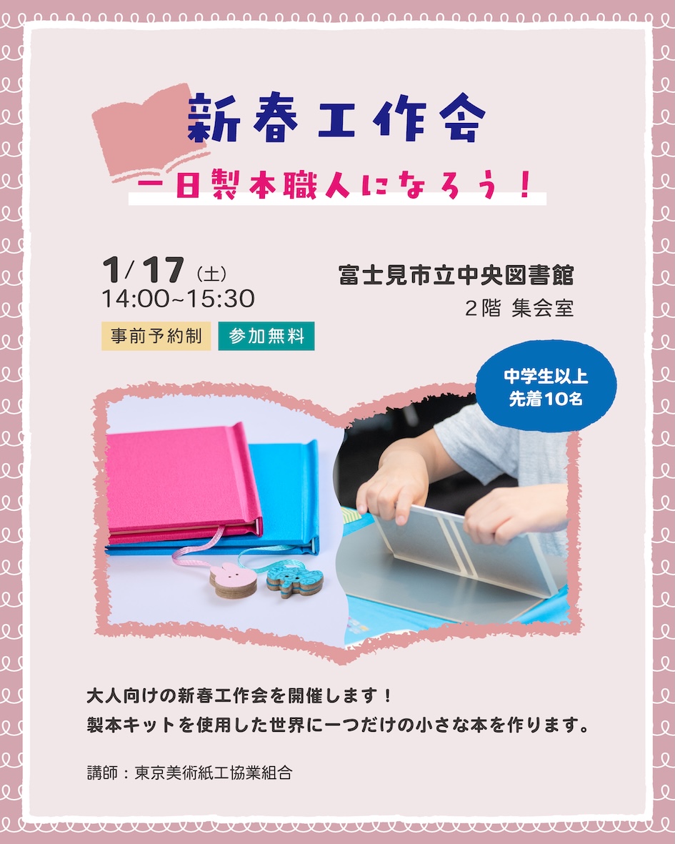 表紙にデコレーションをしたり中身を自由に描いて世界で一つだけの本作りをお楽しみ下さい。
